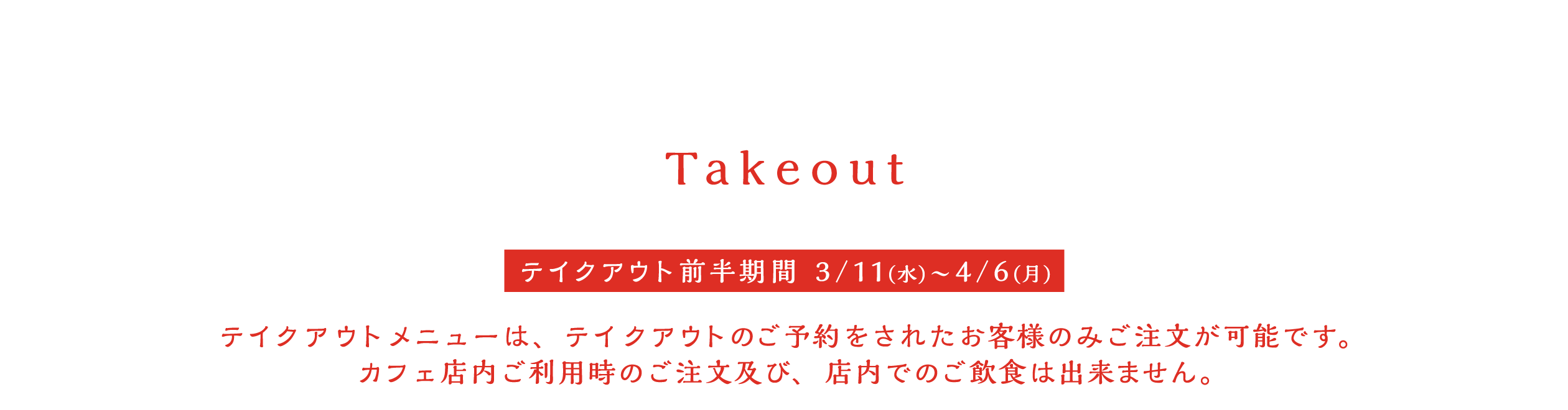 ※混雑回避のため、店内ご利用時の初回オーダーはお一人様合計5品までとさせていただきます。なお、それ以降の追加オーダーは可能です。